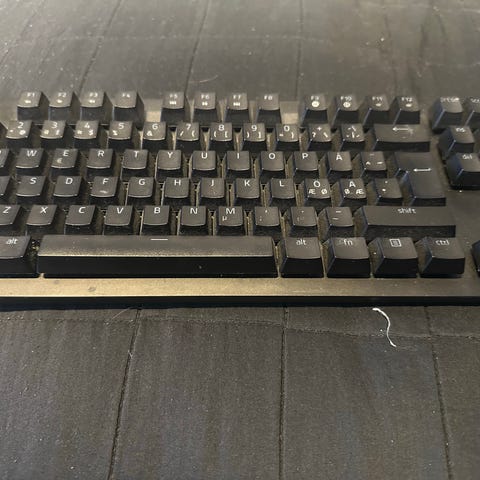 Ei juurikaan isompia jälkiä, paitsi virtakaapelissa n. 30cm päässä näppäimistöstä on teipin jäämä (koitan poistaa vielä). Rungossa tai näppäimissä ei ole jälkiä tai edes rasvaisia sormenjälkiä, sillä koko näppäimistö on putsattu isopropanolilla.