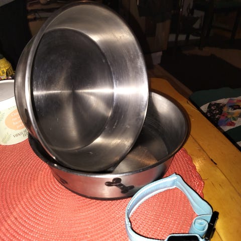 Ruokakuppi liukuesteellä, tyttökoiran panta 28-35cm, harja pyöreäpäisillä piikeillä ja nypittävälle rodulle, oik.käden nyppimiskampa.. Hp.20€, 5€/kpl. Luvialla, kulkeutuu sovitusti Poriin, postitus ok. Mmm.