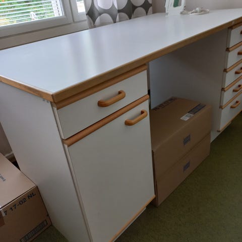 Ammattiompelijan korotettu työpöytä, joka on tehty aikanaan mittatilaustyönä kalustefirmalla. Erikoisuutena pöytään integroitu silityslauta, jonka saa piiloon. Pöytä sijaitsee Ylöjärvellä, josta nouto. Toimitus Tampereen seudulla ja Ylöjärvellä lisäkorvausta 50 euroa vastaan.