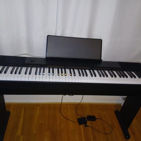 Casio CTK-2500 sähköpiano. Mukana virtalähde mikä kuvassa on. Mukana myös nuottiteline.