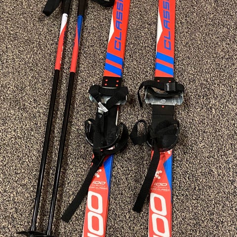 Kenkiin kiinnitettävät sukset 100 cm + sauvat