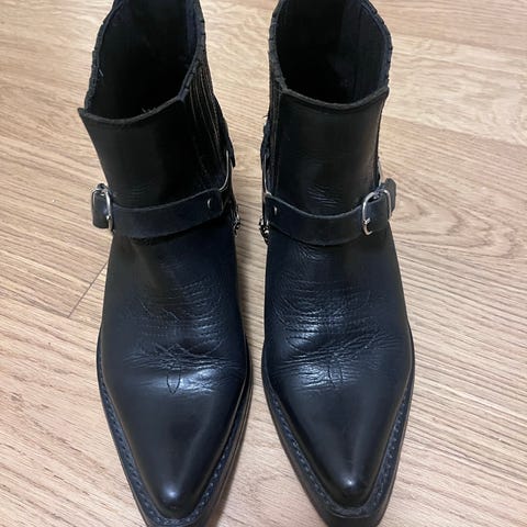 Laadukkaat Dingo-merkkiset (made in Mexico) "granny boots" nyörisaapikkaat. Cowboy- ja westerntyyliseen pukeutumiseen. Väri valkoinen, aitoa nahkaa. Nahka kulunut ja eivät enää hohtavan valkoisetkaan ole, elämää nähneet. Aktiivikäytössä olivat muutamia vuosia sitten. Nahkaa hoidettu ja aina huollettu. Uutena näihin laitatin puolipohjat. Vastaa kokoa 38 (jenkkikoko 8M). Ihanat boho-, cowgirl-, old west-, countrytyyliin! Minun ei tule näitä enää käytettyä, joten saa mennä seuraavalle tanssijalle, esiintyjälle, kantritytölle. Mielellään nouto, mutta voin postittaakin. Ostaja maksaa kulut.