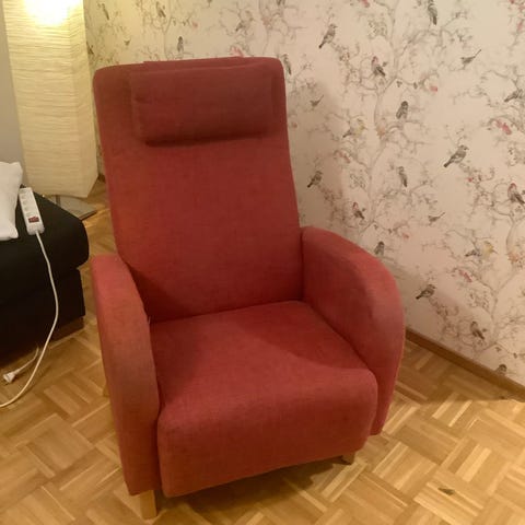 Hyväkuntoinen siisti värikäs nojatuoli. Tarvittaessa kuljetus.
