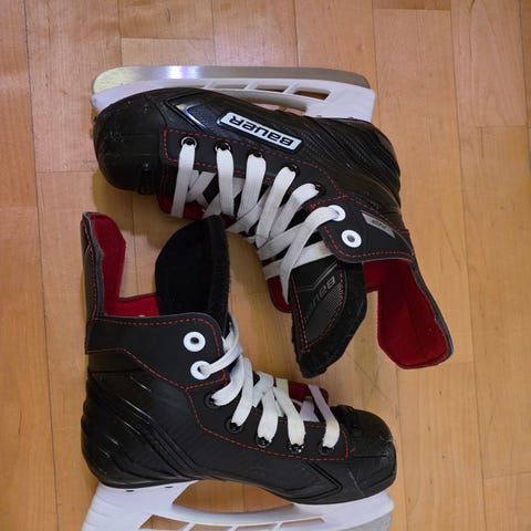 Myydään kaksi talvea käytössä olleet Bauer Whistler lasten luistimet koossa 33. Sisäpohjan mitta on noin 20.5cm. Normaalista käytöstä johtuvia kolhuja on jonkin verran ja nyppyyntymistä sisäkengässä (kuvat) mutta ovat vielä oikein hyväkuntoiset ja toimivat luistimet. Luistimet ovat mukavat ja lämpimät pehmoisen sisäkengän ansiosta.