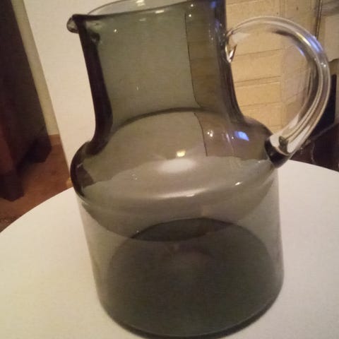 Ymmärtääkseni kupittaan savi -valmistajan käsinmaalattu keramiikkakannu, jossa on vihreä lehtikuviointi. Helmi Suova malli