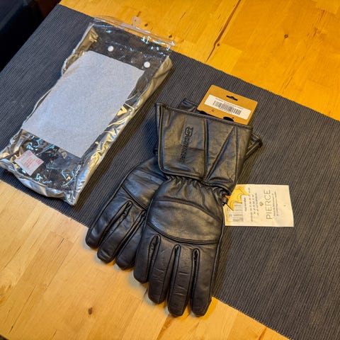 Yhden kesän käytetyt moitteettomassa kunnossa olevat nahkaiset hanskat. Vedenpitävät ja rystyssuojat.