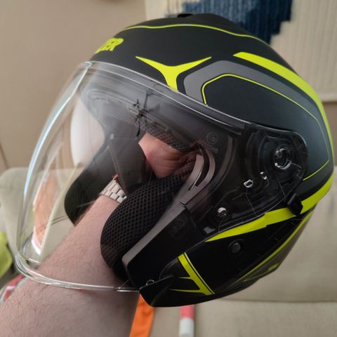 Huom, kypärässä hengitysilman ohjain mikä ohjaa hengitysilman alas ja pois visiiriltä!
