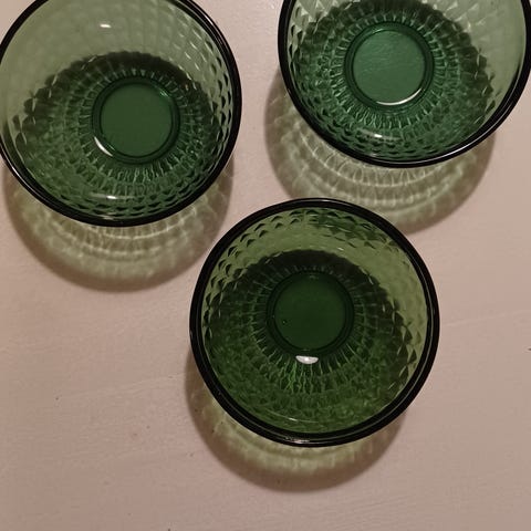 Myynnissä 6 kpl Schirnding-merkkisiä jälkiruokakulhoja (valmistettu Saksassa). Kaunis valkoinen, korvallinen kulho, jonka yläreunassa kohokuvio. Tilavuus 3dl.