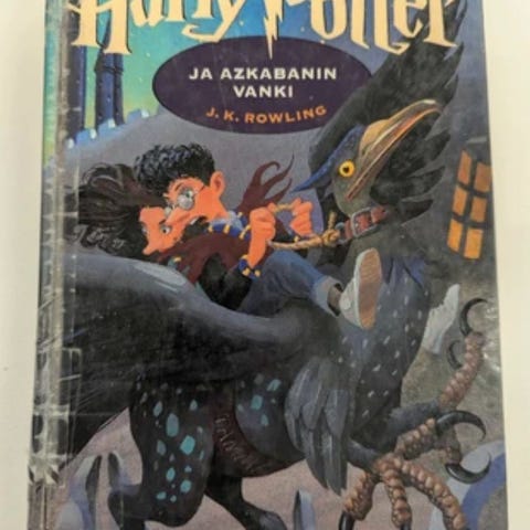 J. K. Rowling Harry Potter kovakantinen kirja suomen kielellä. Kirjasarjan kolmas osa, Azkabanin vanki. Kirjan sivut hieman kellastuneet (ks. kuva), mutta muuten kunto erittäin hyvä.