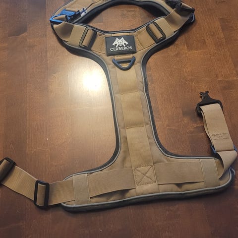Oranssit Cerberokset kahdella heijastimella. Koko M. Käytön jälkiä mutta hyvin toimii ja juuri pestyt.