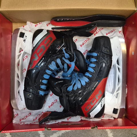 Vuoden käytössä olleet CCM XF luistimet. Koko 6,5 (41) varaterät löytyy myös ja ne kuuluvat kauppaan.