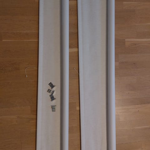 Käyttämätön ja myyntipaketissaan. Kavennettavissa leikkaamalla sopivaksi. Rullaverhon toisessa reunassa on säilytyksessä paketin auettua tullut ruttu. Jos verhon kaventaa, saa virheen pois. Käyttöä tämä ei haittaa. Ovh 70 EUR, alennushinta noin 30 EUR. Hinnassa huomioitu kankaan ruttaantuminen.