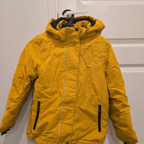 Didriksons, oranssi-tummansininen, oranssissa osissa tummentumaa, reilu koko ja hieman pidempi malli, helmassa kiristys, hihoissa lumilukot ja tarrakiristys, tarrataskut edessä ja vetskataskuja, irrotettava huppu ja hupussa kuminauha sekä tarrasäätö.