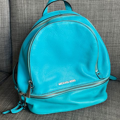 Michael Kors nahkainen reppu. Kaunis linnunmunan sininen väri. Paljon säilytystaskuja ja avainlenksu sisällä. Erittäin hyvä kunto. Koko: korkeus 32 cm, leveys 30, syvyys 15 cm. Dustbag mukaan.