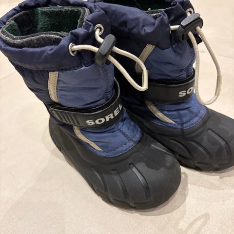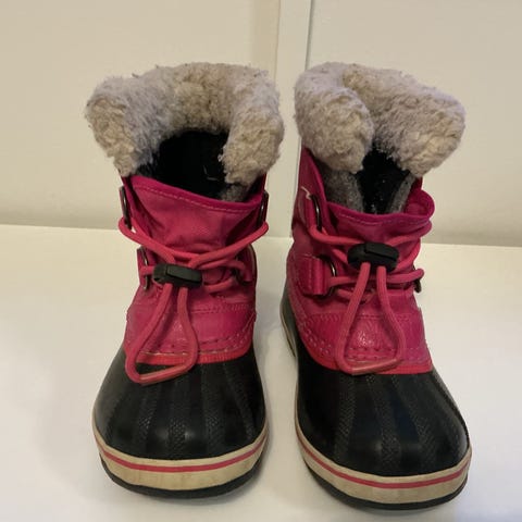 Lämpimät Sorelin talvikengät. Koko 27. Leveä lesti, niin mahtuu hyvin paksumpaa sukkaa kylmillä keleillä. Vuoressa nukkaa ja jotain käytön jälkiä löytyy. Tarrat napakat ja varren säädöt toimii.