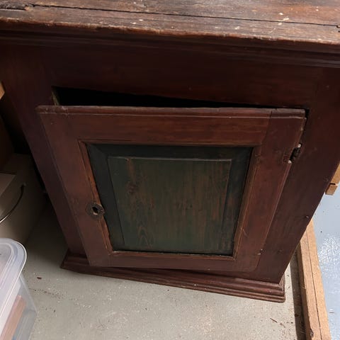Kulumaa on, mutta muuten hyvässä kunnossa kaappi.