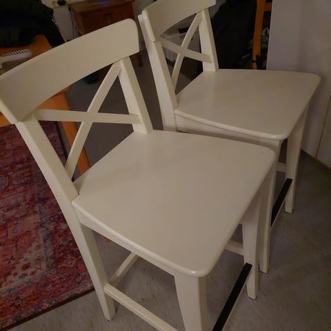 Hyvässä kunnossa oleva baaripöytäryhmä. Erinomainen esimerkiksi yksiöön. Tuolit jyskistä ja pöytä itsetehty.