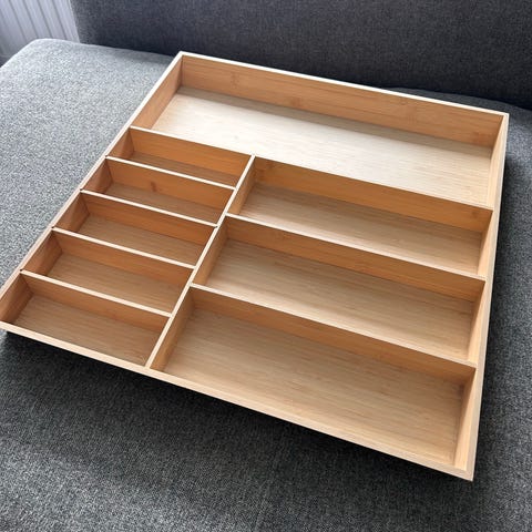 Puinen lokero haarukoille, veitsille, lusikoille. Kokoa voi säätää.