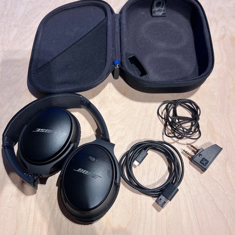 Siistikuntoiset ja täysin toimivat Bose Quietcomfort 35 vastamelukuulokkeet. Pehmusteet hiljattain uusittu, uudet korvakuvut mukaan sekä mukana tulleet kotelo, kaapelit ja lentokone adapteri.