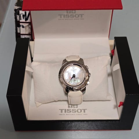 Tissot miesten rannekello, titaaninen. Kunto hyvä, kaikki ominaisuudet toimii niin kuin kuuluu.