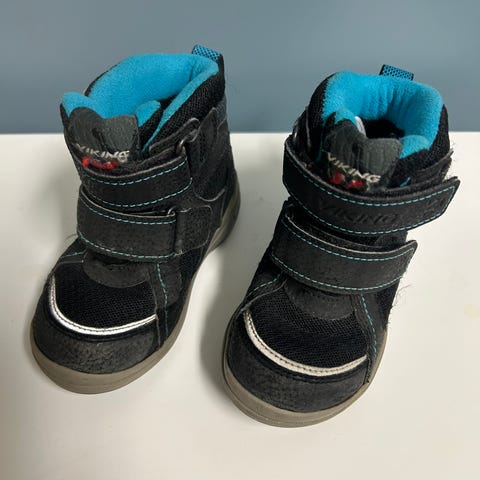 1. Viking talvikengät, koko 21, hyvin vähän käytetyt, musta kangasmateriaali, sisäpohjan pituus n. 14 cm. Hinta 19 e.