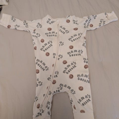 Ihana Next Baby salmiakkikuvioinen haalari. Pidetty ainoastaan muutamia kertoja, uutena meille tullut. Pesun jäljiltä ruttuinen. Koko noin 62-68cm (3-6kk).