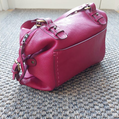 Käytetty, mutta hyvässä kunnossa – palvelee vielä pitkään. Pehmeä hihna, sisällä lokeroita ja taskuja. Siisti ja huoliteltu, puhdas ja ehjä.