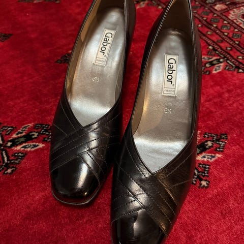 Myydään ainoastaan pari kertaa käytetyt, kuin uudet mustat nahkaiset Gabor-merkkiset leveäkorkoiset korkokengät. Koko 5,5. Koron korkeus 5,5cm. Hyvät jalassa, koko osoittautui vain itselle liian pieneksi.
