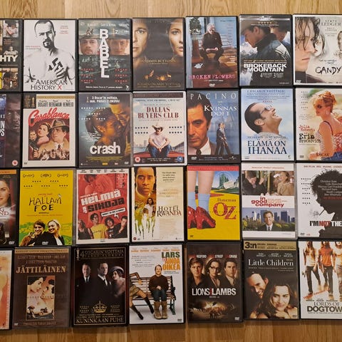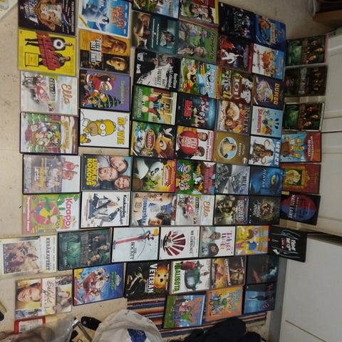 Sekalaiset dvd:t mm. Grease 1 ja 2, Harry Potter ym. Muutamia sekalaisia lehtiä, Akkareita, Mustanaamio.. kahvinkeitin pannutta ellen löydä nopeasti pannua niin sitten sekin mukaan. Koko setti kerralla.