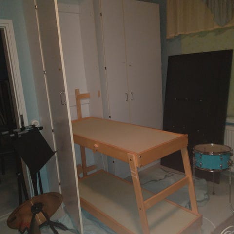Alimman sängyn pohjasäleiköstä yksi lauta rikki.