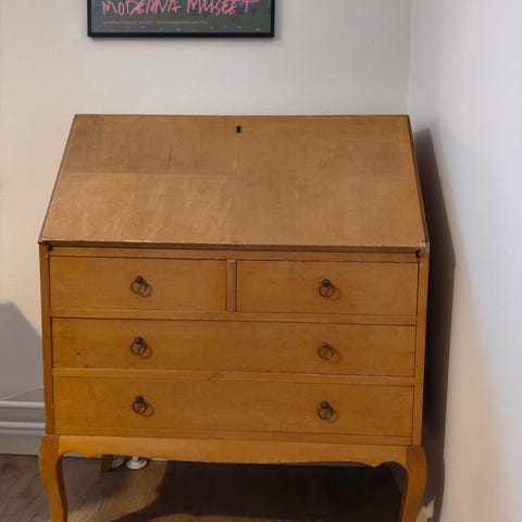 Komea 50-luvun kirjoituslipasto etsii uutta kotia. Avain tallessa ja lukot toimivat. Rakenne tukeva. Klaffin alapuolella kuvan mukaista lohkeamaa, joka ei lipaston käyttöön vaikuta. Sisusta siisti eikä ole hajuja.