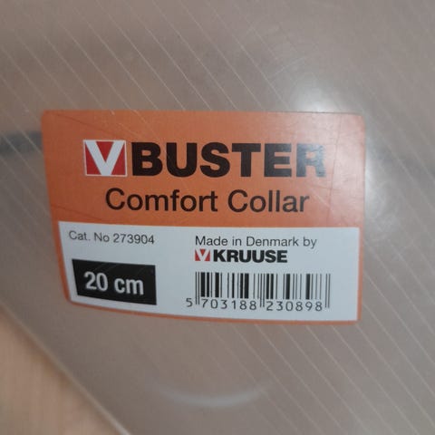 Annetaan tarpeettomana ehjä, mutta siistimistä kaipaava kaulapantaan kiinnitettävä muovikaulus koiralle. Koko 20 cm, jossa jonkun verran säätövaraa.