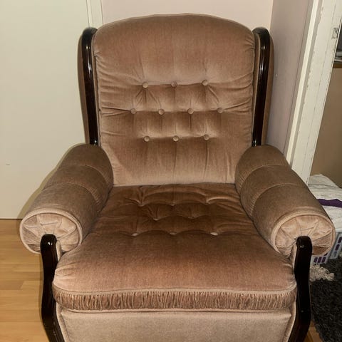 Yhden tuolin koristenauha puuttuu, mutta korjausrottinki ja naulat kuuluvat mukaan!
