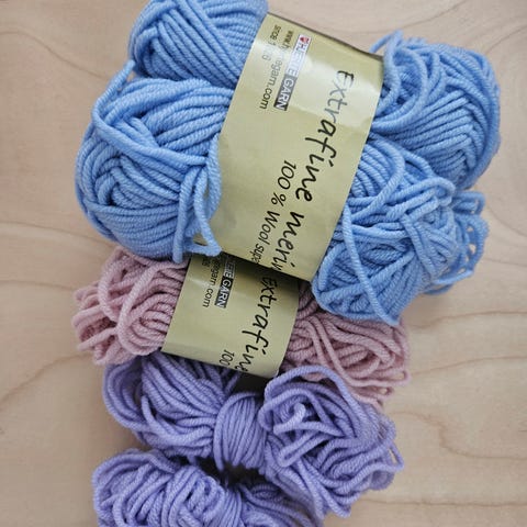 2 kerää Adlibriksen Baby Merino -lankaa. Väri Hot pink (A038). Molemmat samaa värierää (K438).
