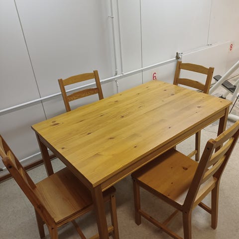 Myyn edullisesti huonekaluja pois muuton takia pois. Huonekalut ovat hyvässä kunnossa. Pöytän päällä vähäsen pientä kulumisen jälkiä. Hinnat todella edullisia 5€/kappale. Maksuna käy käteinen tai Mobile bay.