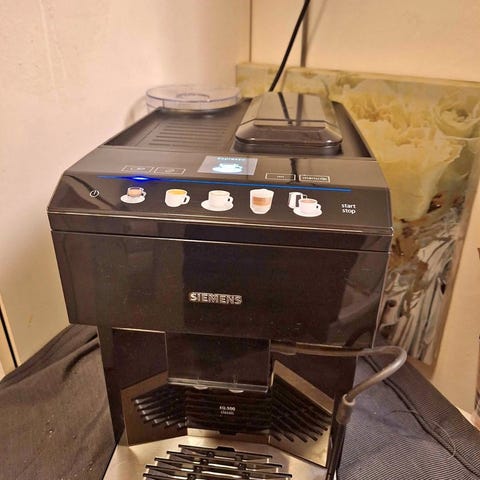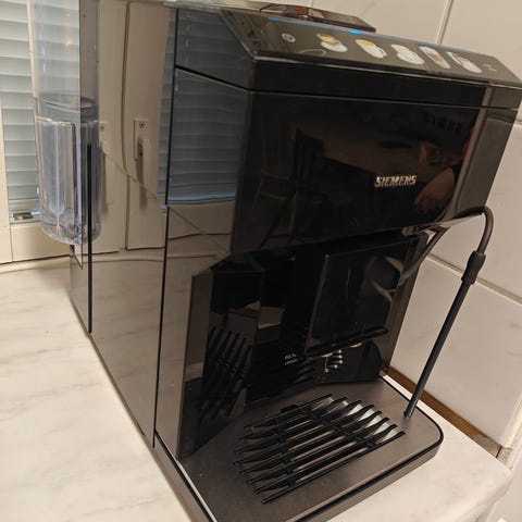 Siemensin mustanvärinen kahvikone myynnissä uuden tieltä.