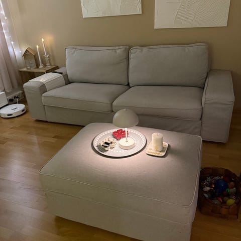 - 3-istuttava sohva (kahdella isolla istumatyynyllä, mahtuu jopa neljä pienempää istumaan)