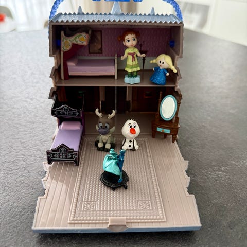 Disney Frozen leikkitalo sisältää linna-aiheisen leikkisetin, joka on valmistettu muovista.