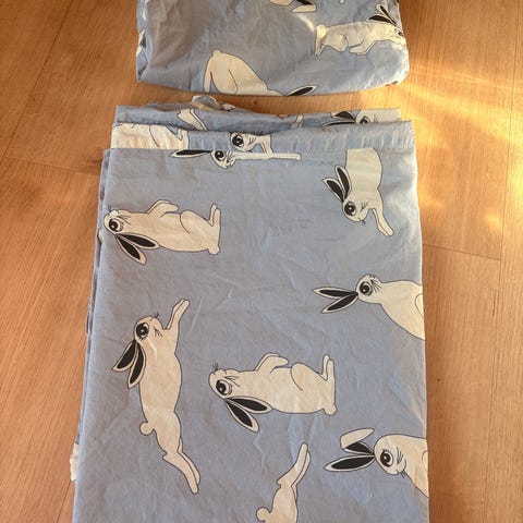 Junior koon pussilakana ja tyynyliina. Vain kerran käytetty ja pesty, en huomaa mitään käytönjälkeä. Säilytyspussi mukaan.