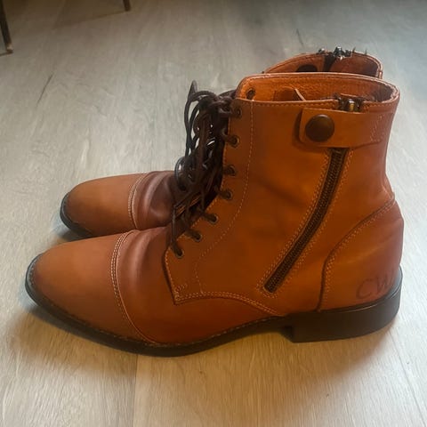 koko 36, hieman tiukka varresta. Kulumaa pinnassa vähän, mutta mutta oikein hyväkuntoiset, ei ole paljoa käytetty. Nahkaa.
