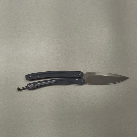 Myynnissä Hackmanin valmistama retro ”butterfly knife” linkkuveitsi.