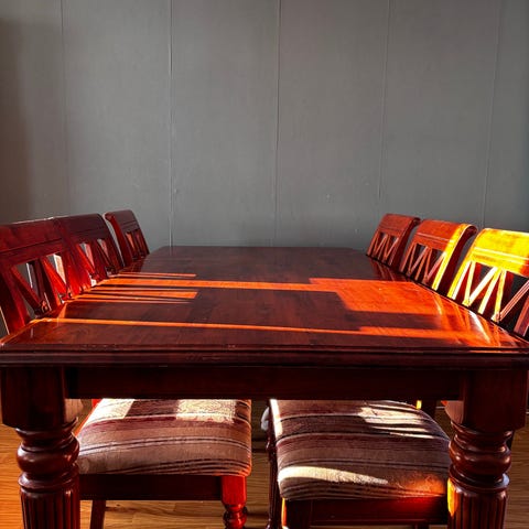 Erinomaisessa kunnossa oleva ruokailuryhmä. Kaksi tuolia käsinojilla ja neljä tuolia ilman. Sijaitsee Savonlinnassa. Kuljetus järjestyy sopimuksen mukaan. Kulkeutuu tarvittaessa Savonlinna-Helsinki-välille omien menojen mukaan.