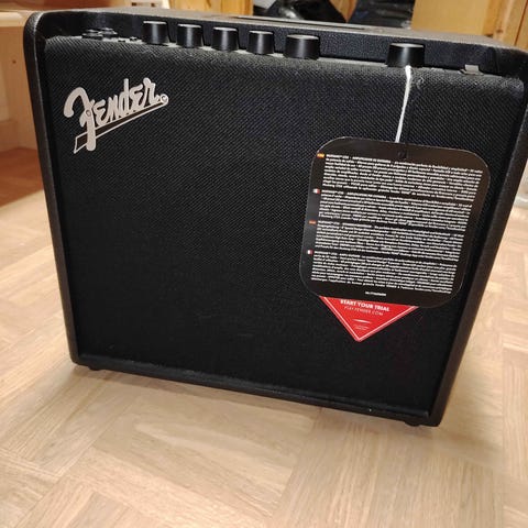 Hyvässä kunnossa oleva Fender Mustang V kaappi ja nuppi. Mukaan tulee footswitch. Hyvin soiva vahvistin ja myös hyvässä kunnossa muutamaa naarmua lukuunottamatta (kuva 6)