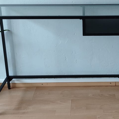 Ikean ALEX työpöytä. Pöytä muuten ehjä, mutta päällinen naarmuuntunut/kärsinyt. Pöydässä kätevä lokero johdoille.