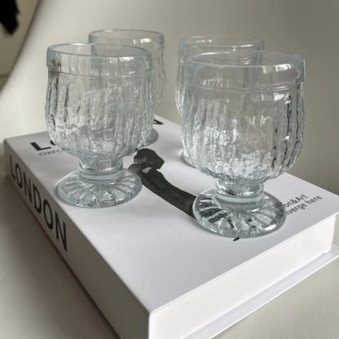 Kehrä lasit 7kpl, kulhot 7kpl, sokerikko/pieni tarjoiluastia.