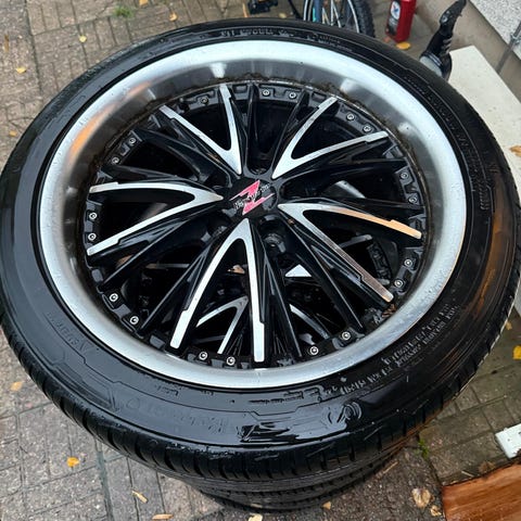 Hieno vannesetti ok kuntoisilla renkailla. Yhdessä vanteessa pieni jälki, näkyy kuvassa 1 ja 3. Hinnassa on tinkaus varaa.
