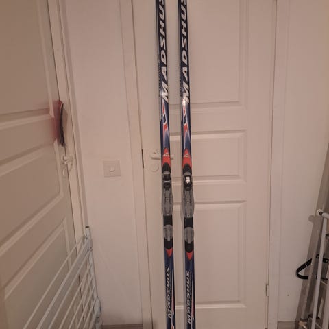 Madshus sukset pitopohjalla , sauvat ja alpina monot kokoa 35