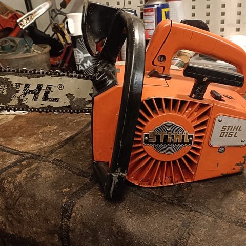 Stihl E 14 sähkösaha. Täysin kunnossa oleva, hieman vain likainen. Ketju puolikuntoinen.