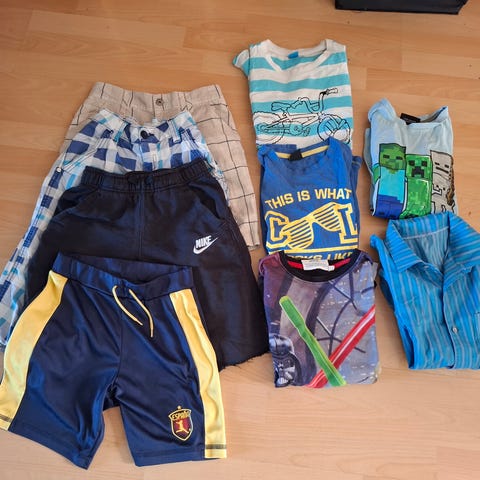 Vaatepaketti pojalle, 22 vaatetta. Koot vaihtelee, pääasiassa 130-140 kokoiselle.