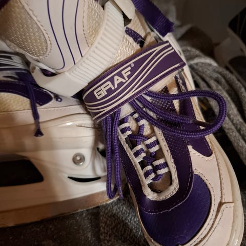 Graf Thinsulate Adjustable Ice Skate, lasten jääkiekkoluistimet, säädettävä koko 31-34. Kunto: normaalia käytön jälkiä, terät hyvässä kunnossa.